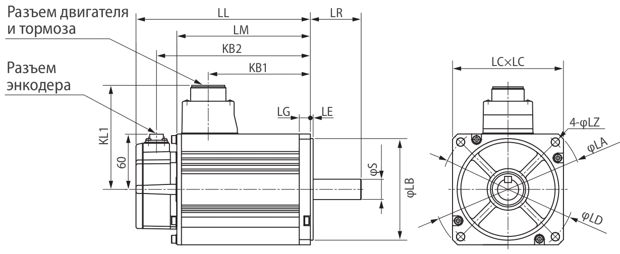 R88M-KH1K020C-S1/BS1 - высокоинерционный сервомотор, 4,77 Н·м, 1 кВт, 2000 об/мин, 400 В, 17-разр. абсолютный энкодер, вал со шпонкой, без тормоза / с тормозом.